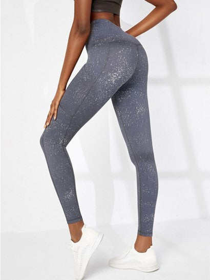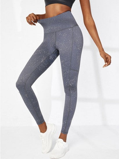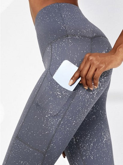 Reflective Splatter Paint Design Sports Night Running Yoga Leggings With Phone Pocket
